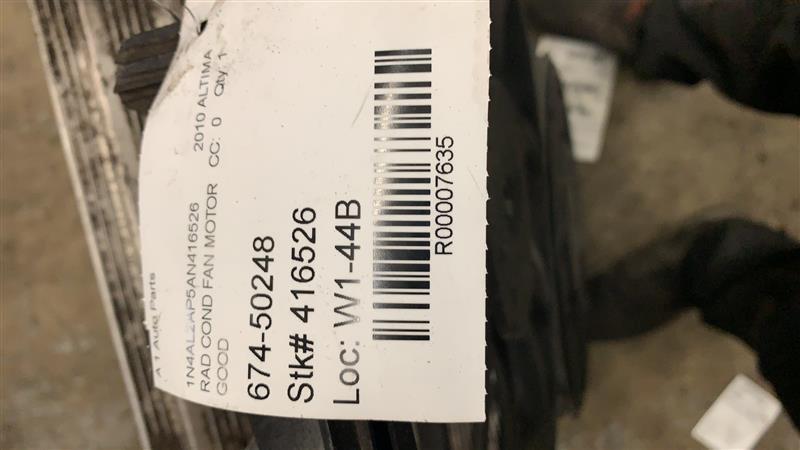 Source Vehicle Color: GREY Interchange Part Number:674-50248 Hollander Interchange found this part as interchangeable with: ALTIMA 07-10 Fan Assembly; exc. Hybrid; 2.5L (4 cylinder); ALTIMA 11 Fan Assembly; exc. Hybrid; 2.5L (4 cylinder), thru 3/11