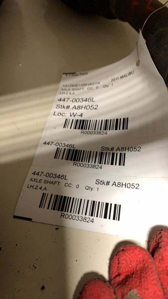 Source Vehicle Color: WHITE Interchange Part Number:447-00345R Hollander Interchange found this part as interchangeable with: AURA 09 Front Axle; (AT), 6 speed, 2.4L (opt MH8), R., outer assembly; G6 09 Front Axle; (AT), 6 speed, opt MH8, R., outer assembly; G6 10 Front Axle; (AT), 6 speed, (opt MH8), R., outer assembly; MALIBU 09-12 Front Axle; (AT), 2.4L, 6 speed (opt MH8), R., outer assembly