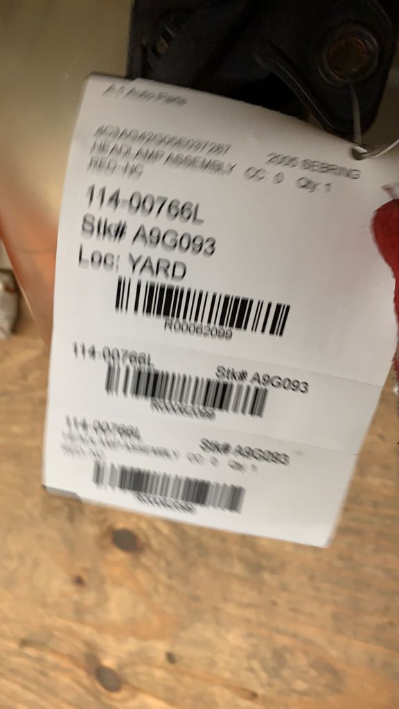 Source Vehicle Color: RED Conditions/Options:RED--NC Interchange Part Number:114-00766L Hollander Interchange found this part as interchangeable with: SEBRING 03-05 Cpe, L.