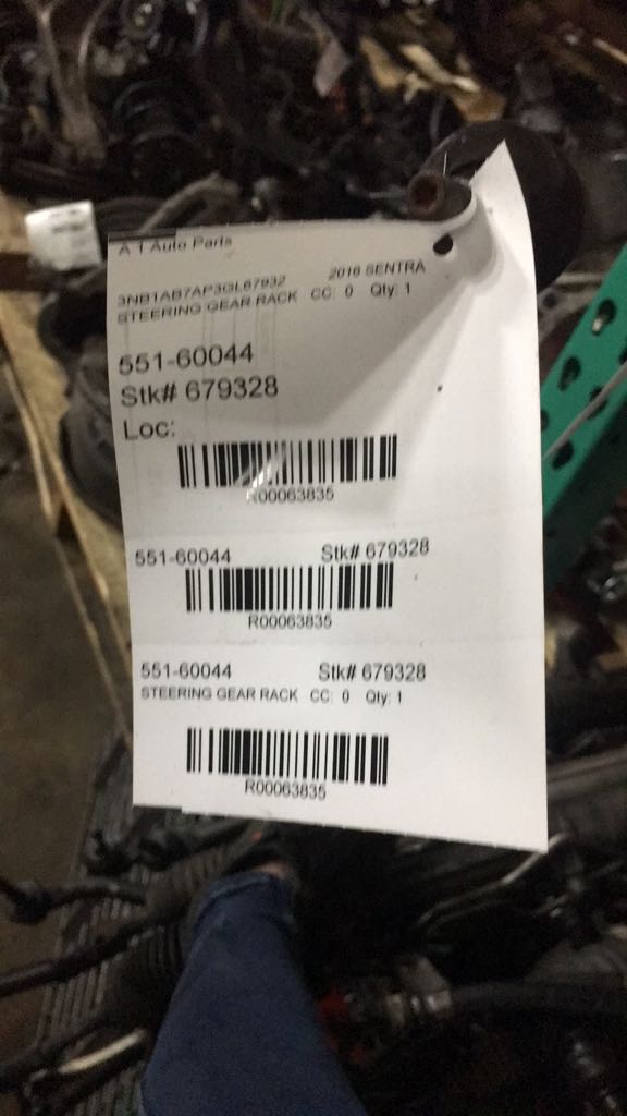Source Vehicle Color: BLK Interchange Part Number:551-60044 Hollander Interchange found this part as interchangeable with: SENTRA 14 Manual Rack and Pinion; from 8/13; SENTRA 15-16 Manual Rack and Pinion; ; SENTRA 17 Manual Rack and Pinion; 1.8L; SENTRA 18-19 (manual rack and pinion), 1.8L