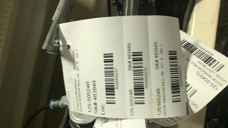 Source Vehicle Color: GRAY Conditions/Options:WINDOW REGULATOR Interchange Part Number:125-50524R Hollander Interchange found this part as interchangeable with: SIENNA 11-20 (electric), R.